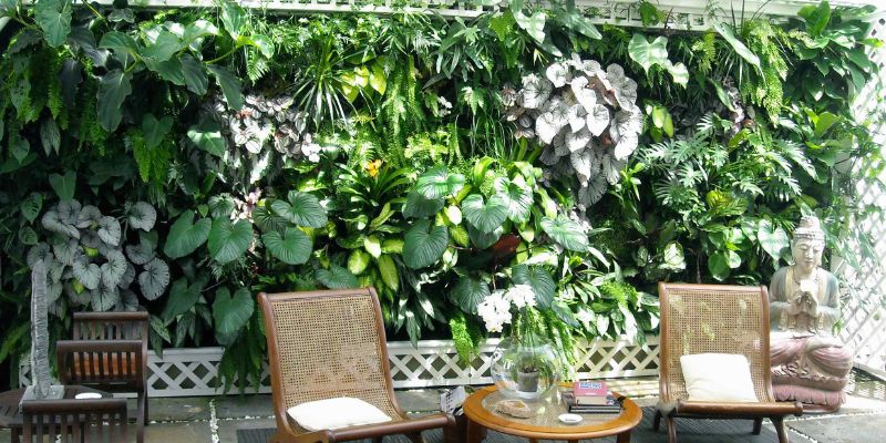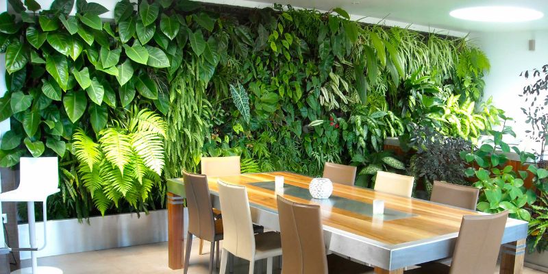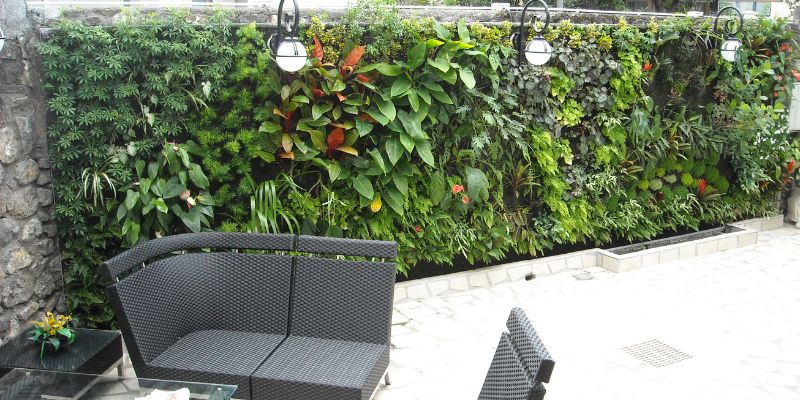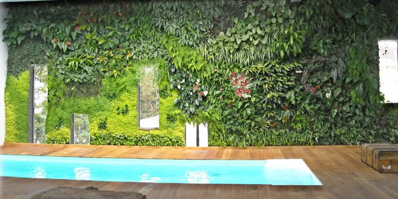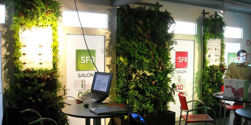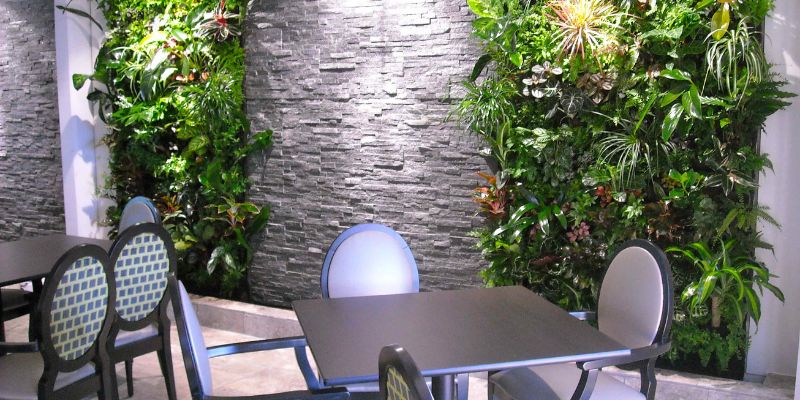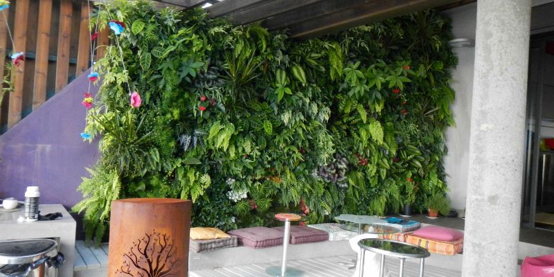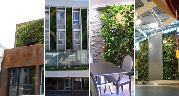300 m² parois végétales installées en intérieur et extérieur. Gamme création. Bâtiment classé, subvention BPI 70%