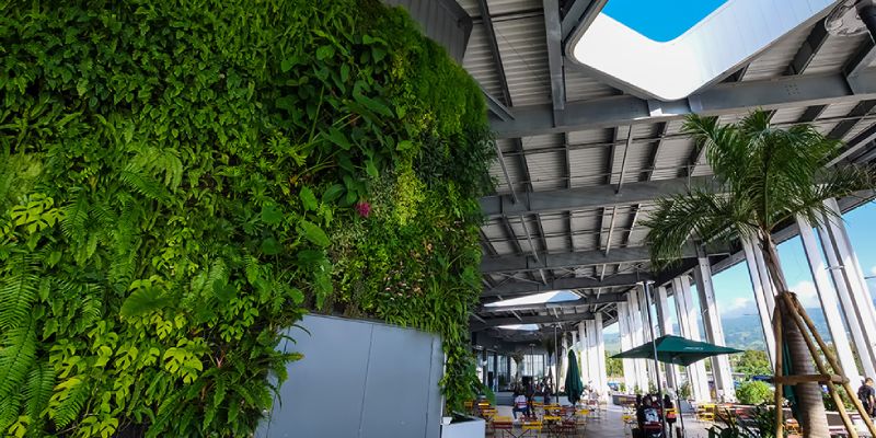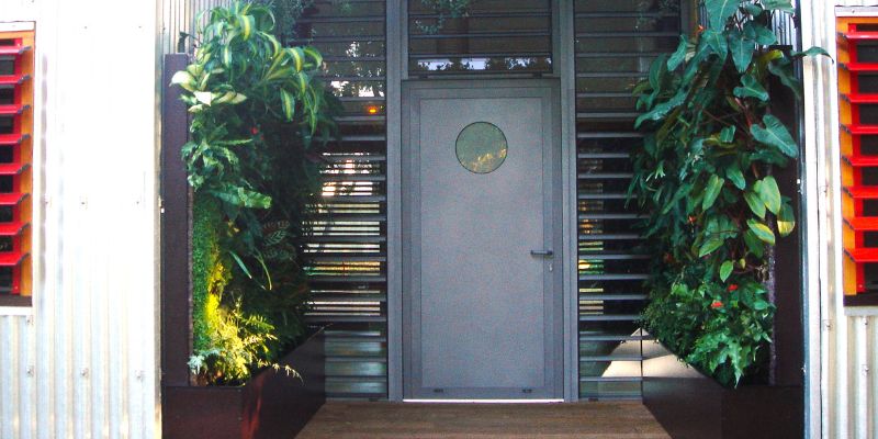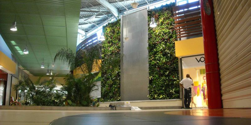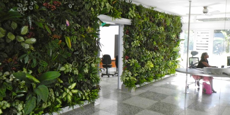 300 m² parois végétales installées en intérieur et extérieur. Gamme CRÉATION. Bâtiment HQE et ERP