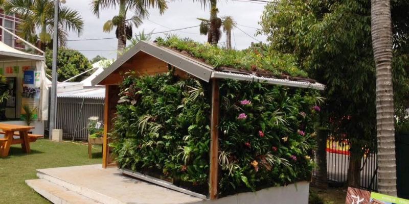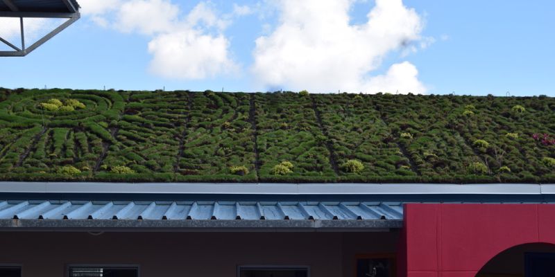 150 m² de parois végétales installées sur le toit de 5 bâtiments. Gamme NATURE. Réduction de température pour les enfants.